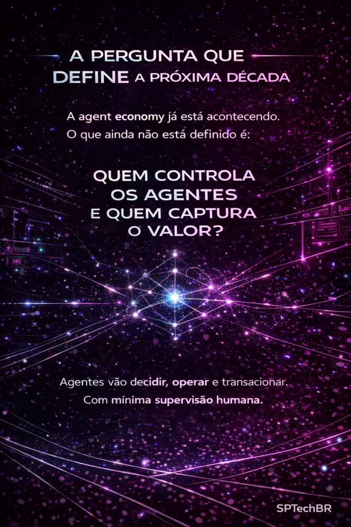 A pergunta é: quando agentes autônomos puderem contratar, pagar, decidir e operar com mínima supervisão humana — quem vai ser responsável pelo que eles fazem, e quem vai capturar o valor que eles criam?